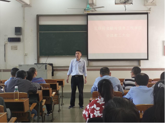 10月27日,我院在7栋教学楼101课室召开全体教工大会暨工会会员大会院党总支书记朱小焱、院长吴炎太教授、副院长钟雪灵、副院长潘章明、副书记丘志君出席了会议,全院教工参加了会议。