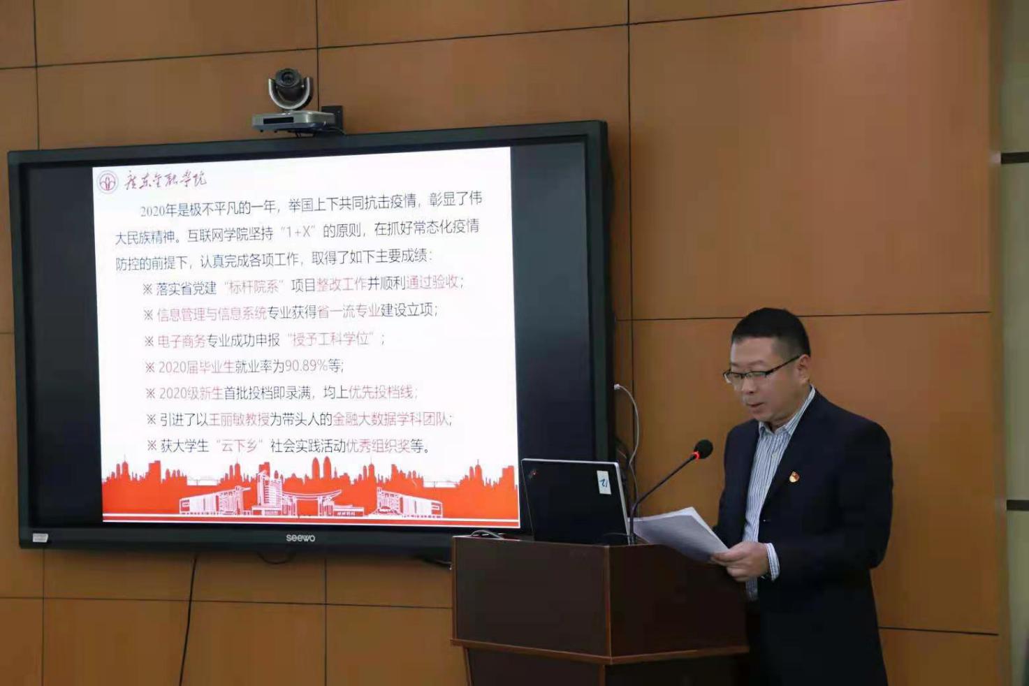 2021年1月21日,我校在教学实验中心二楼会议室召开2020年度党总支书记抓基层党建工作述职评议会。互联网学院党总支书记朱小焱参加了述职评议会,院长吴炎太教授作为特邀代表列席了会议。