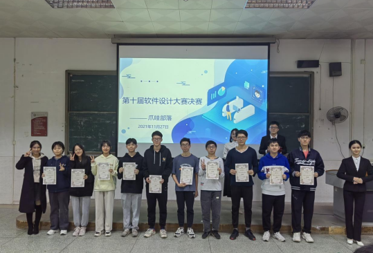 2021年11月27日,互联网金融与信息工程学院在6栋502教室举办2021年互联网“+”年华之第十届“软件设计大赛”决赛,此次大赛由爪哇部落负责承办。学院党总支副书记丘志君、辅导员钟培权等出席了活动,决赛邀请了郭艺辉博士、鲜征征博士和校友陈丽平、冯谭送、陈广镇、黄晓强、林川钰、廖嘉豪、邱泽明、林康杰、陈晓璇、黎书行、吴楚鹏、陈彬、梁雅群、郑俊钦等担任本次比赛评委,七个团队入围参加了此次决赛。学院党总支书记朱小焱、辅导员王思又等近300名师生线上观看了大赛直播,100多名学生到场观看了比赛。决赛由于学礼、刘哲玉同学主持。