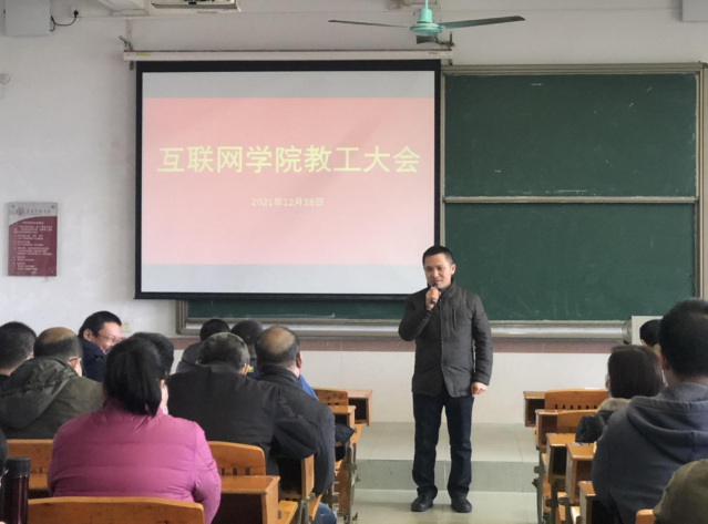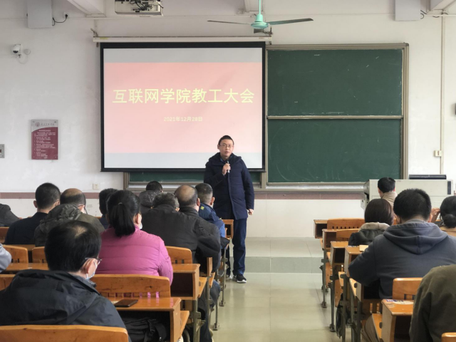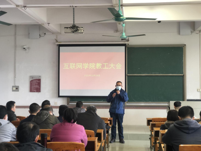 2021年12月28日,互联网金融与信息工程学院在7栋102课室召开全体教工大会,全院教工参加了会议,会议由院长吴炎太教授主持。
