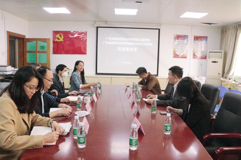 广东亚视演艺职业学院党委书记吴刚对学院领导的热情接待表示感谢。他表示,通过此行参观互联网金融与信息工程学院,学到了很多关于党建工作、专业规划、专业建设等方面行之有效的经验。接着,他以职普融通、产教融合、科教融汇的人才发展理念,探讨了两院之间合作新模式,并希望通过此次交流,能进一步巩固双方友好关系,共同发展进步,在人才培养、师资建设及就业等方面开展合作交流,推动双方未来发展取得更多成效。