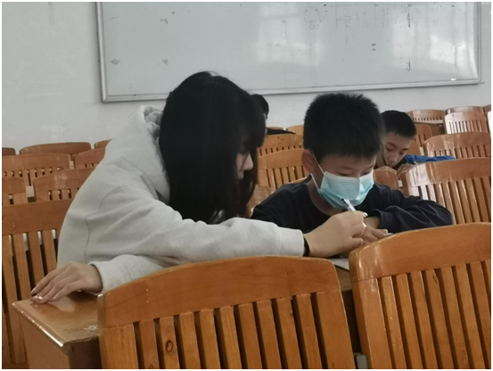 为提升辅导效率和针对性,志愿者们在本次支教活动中采取一对一的辅导方式,帮扶后勤职工子女完成课业。辅导过程中,志愿者们认真听取孩子们的问题,耐心解答他们的疑惑,尽心尽力辅导他们的学业。
