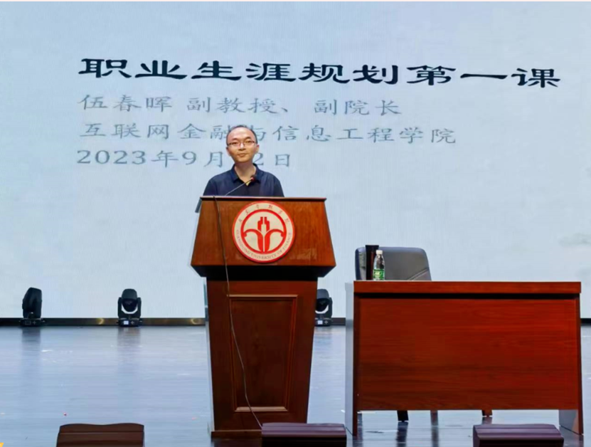 9月22日,我院党委书记胡小波、副院长伍春晖在清远校区大会堂,为2023级互联网学院新生讲授了“职业生涯规划第一课”。