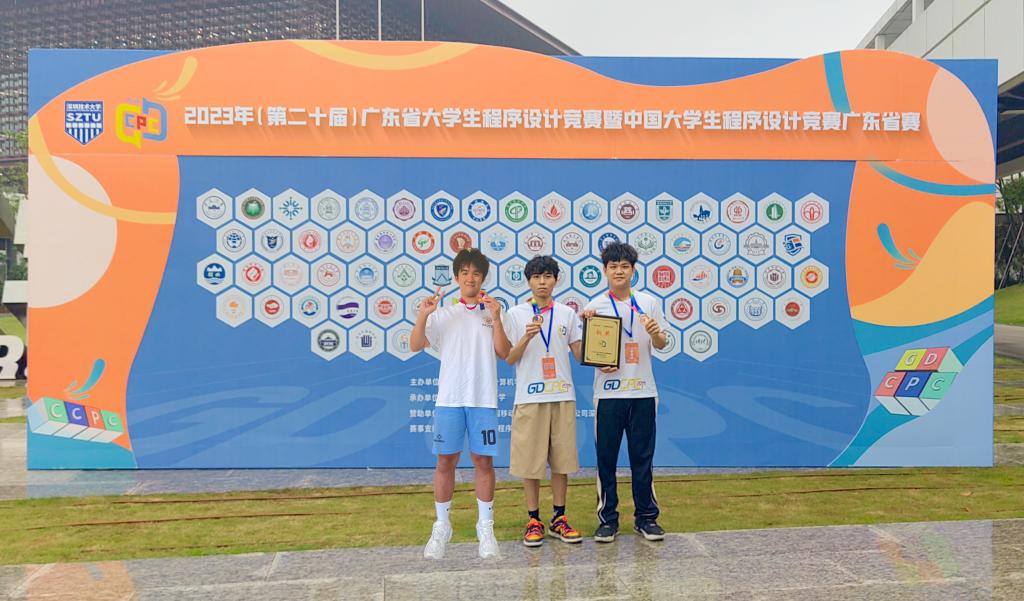 近日,第20届广东省大学生程序设计竞赛(GDCPC)暨中国大学生程序设计竞赛(CCPC)广东省赛在深圳技术大学举行圆满落幕。我院学子徐展鹏、曹家豪等6位同学组成两支队参与了本次比赛。经过五个小时的激烈角逐,由徐展鹏、曹子杰、廖斌楷组成的队伍,以及由曹家豪、陈思涛、汤雨杭组成的队伍均获得铜牌。