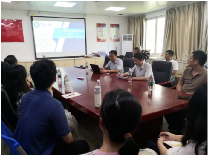 应互联网金融与信息工程学院邀请,9月28日,暨南大学广东智慧教育研究院副院长官全龙教授在互联网学院做了题为“人工智能在教育领域的研究—教育资源智能标记、表征与推荐”的报告,学院部分科研骨干参加了会议并与官教授进行了深入的交流讨论,报告会由吴炎太院长主持。