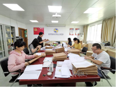 图3:全体辅导员专心致志地整理毕业生档案材料