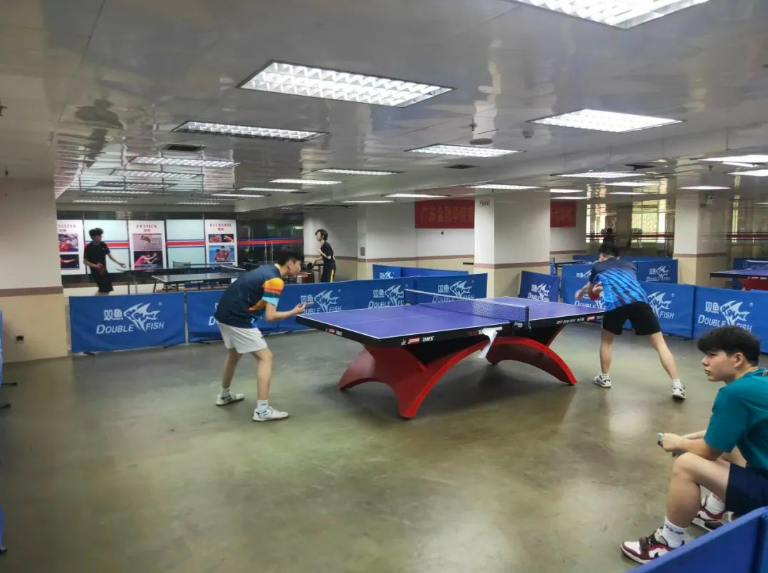 球拍一红一黑,乒乓球如同被施了魔法,在蔚蓝的球桌上划出一道道美丽的弧线。