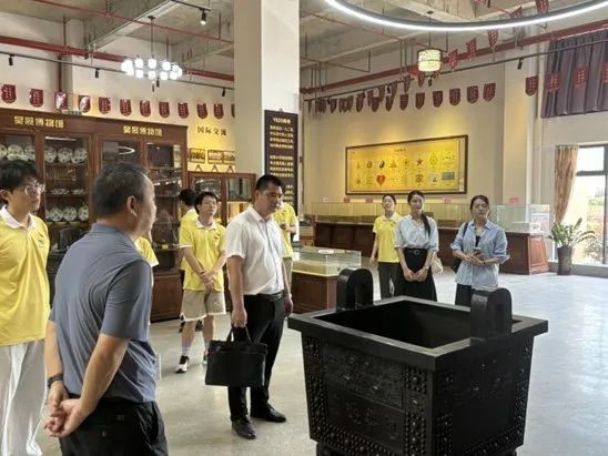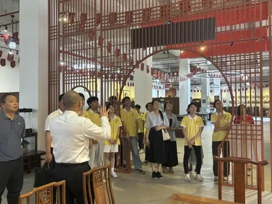 学院书记老师与队员们在董事长吴世海先生的陪同下探访了广宁县江屯镇江合村的茶产业基地,吴世海先生简要介绍基地的基本情况,并带领大家参观了古今中外茶博物馆以及昊展博物馆,就茶文化的传承与发展与我们进行了交流。经过此次的交流学习,实地调研取得了更详细的信息,丰富了调研报告内容。