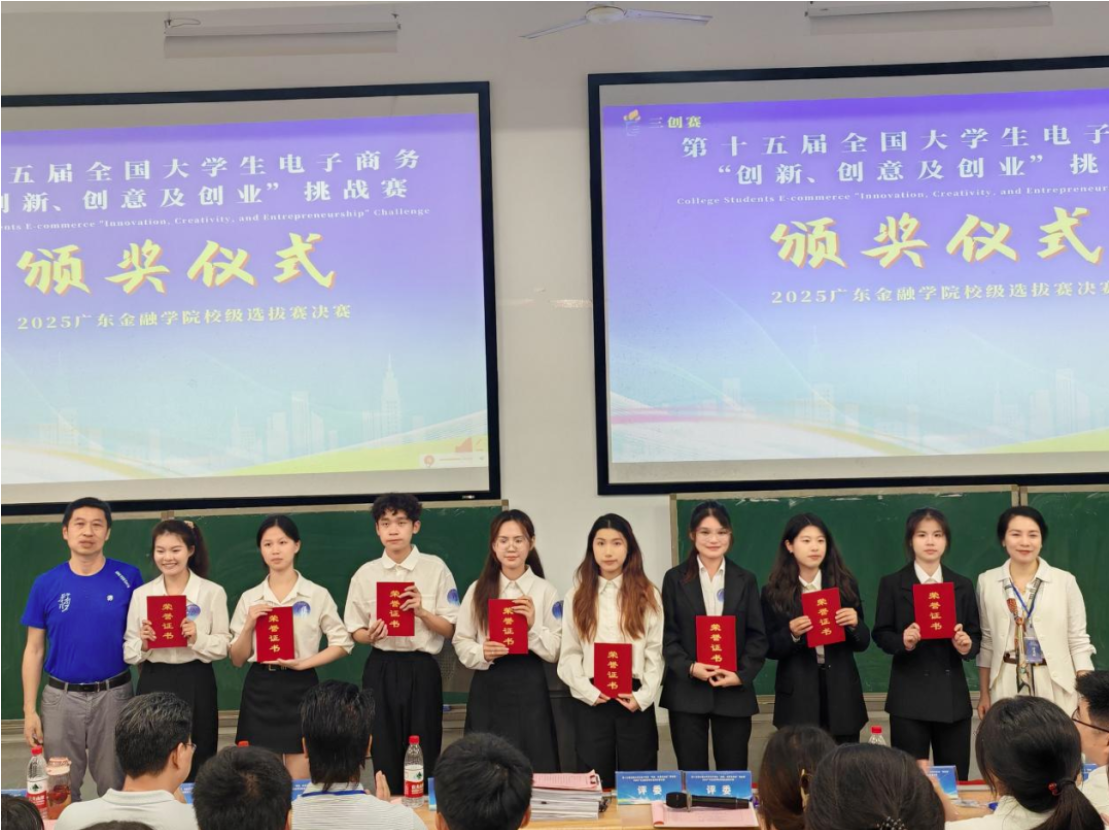 广东金融学院互联网金融与信息工程学院副院长伍春晖,电子商务系主任刘宇熹、副主任廖晓,法学院电子商务与法律系主任程雪梅、副主任陈叶茂等校内领导和专家莅临现场指导。大赛还特别邀请互联网学院王春梅、陈晓丽等骨干教师,以及广州全管家物业管理有限公司董事长李斌、广东翼启数据产业有限公司总经理林树生、国金证券广东华夏路营业部理财经理李树庭等多位业界精英担任评委。