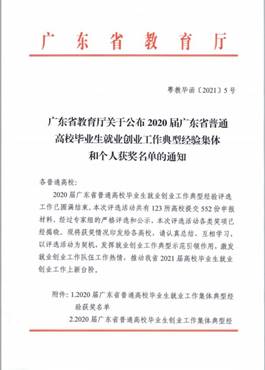 近日,广东省教育厅发布《广东省教育厅关于公布2020届广东省普通高校毕业生就业创业工作典型经验集体和个人获奖名单的通…[详细]
