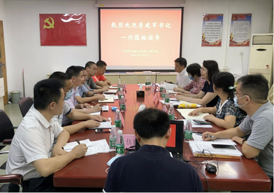 2021年7月5日,校党委书记李建军研究员一行到互联网金融与信息工程学院调研。校党委办公室主任吴惠琴、教务处处长江金锁、学生…[详细]
