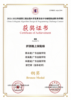 【喜讯】我院学子在第三届全国大学生算法设计与编程挑战赛(秋…